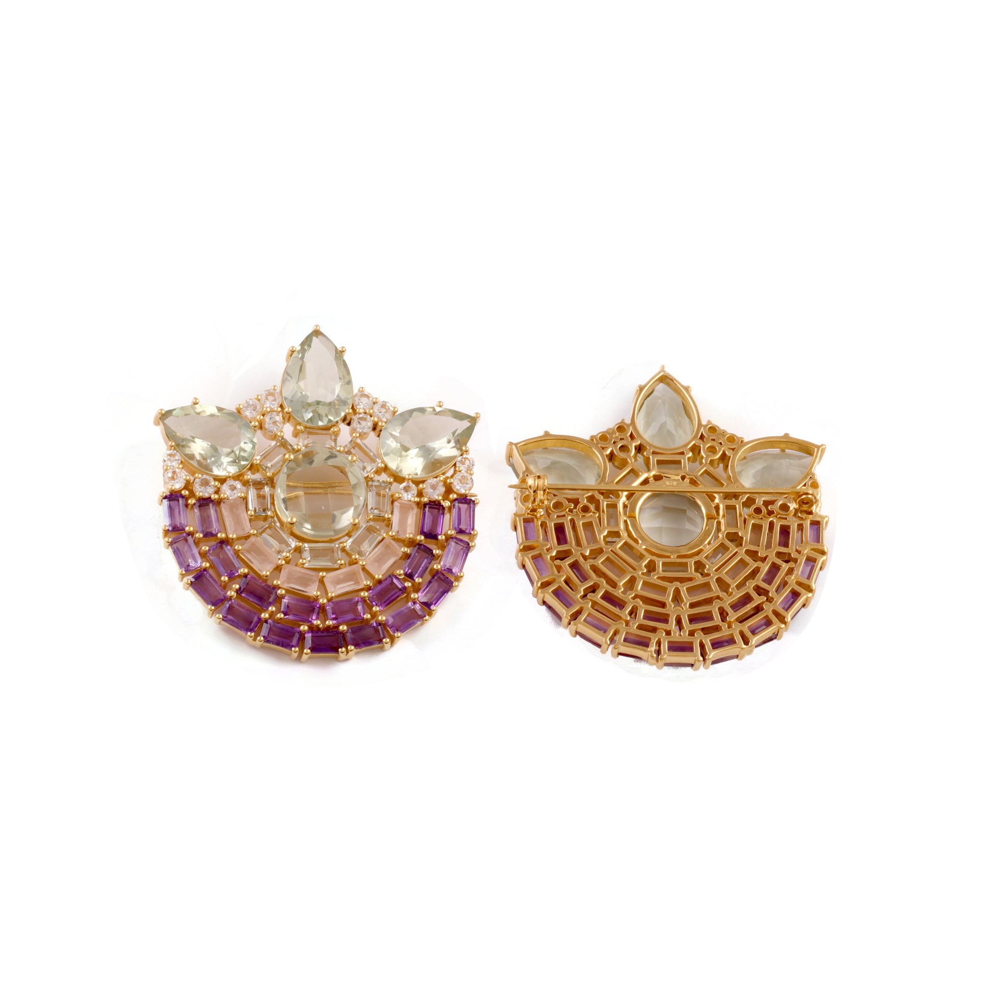 Green and violet amethyst, rose quartz and aquamarine stones.