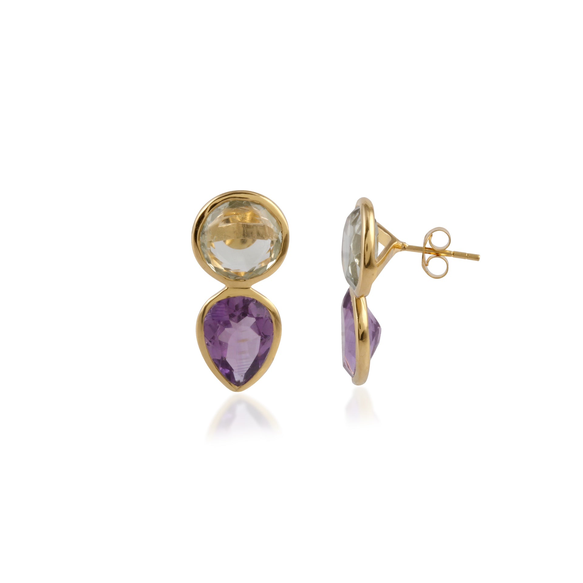 Green and violet amethyst post-back earrings.