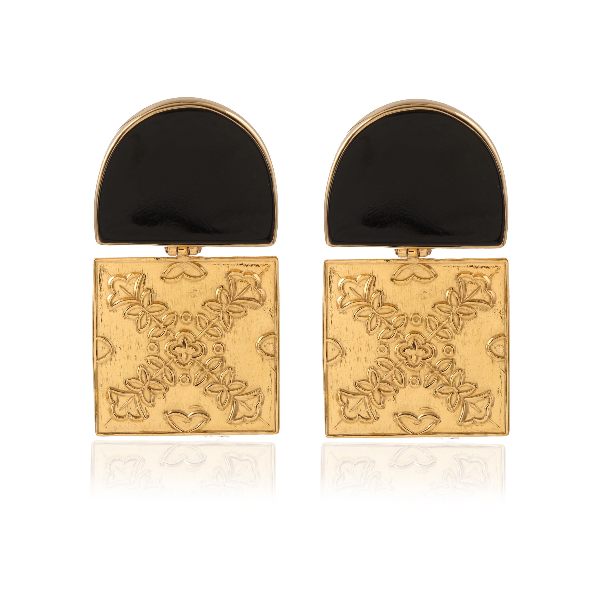 Custom order of 18kt solid gold Black Onyx Ohia Earrings - 15mm.