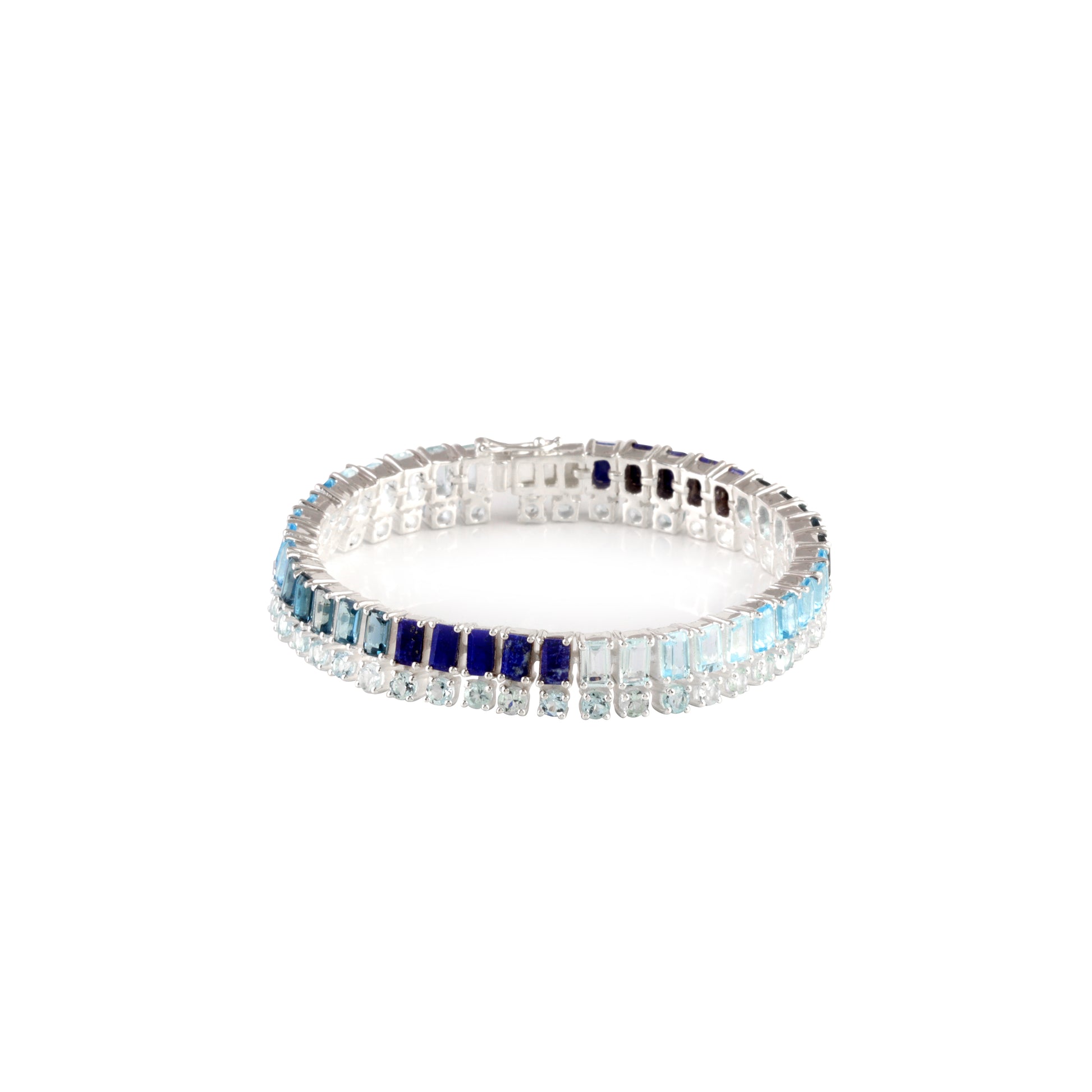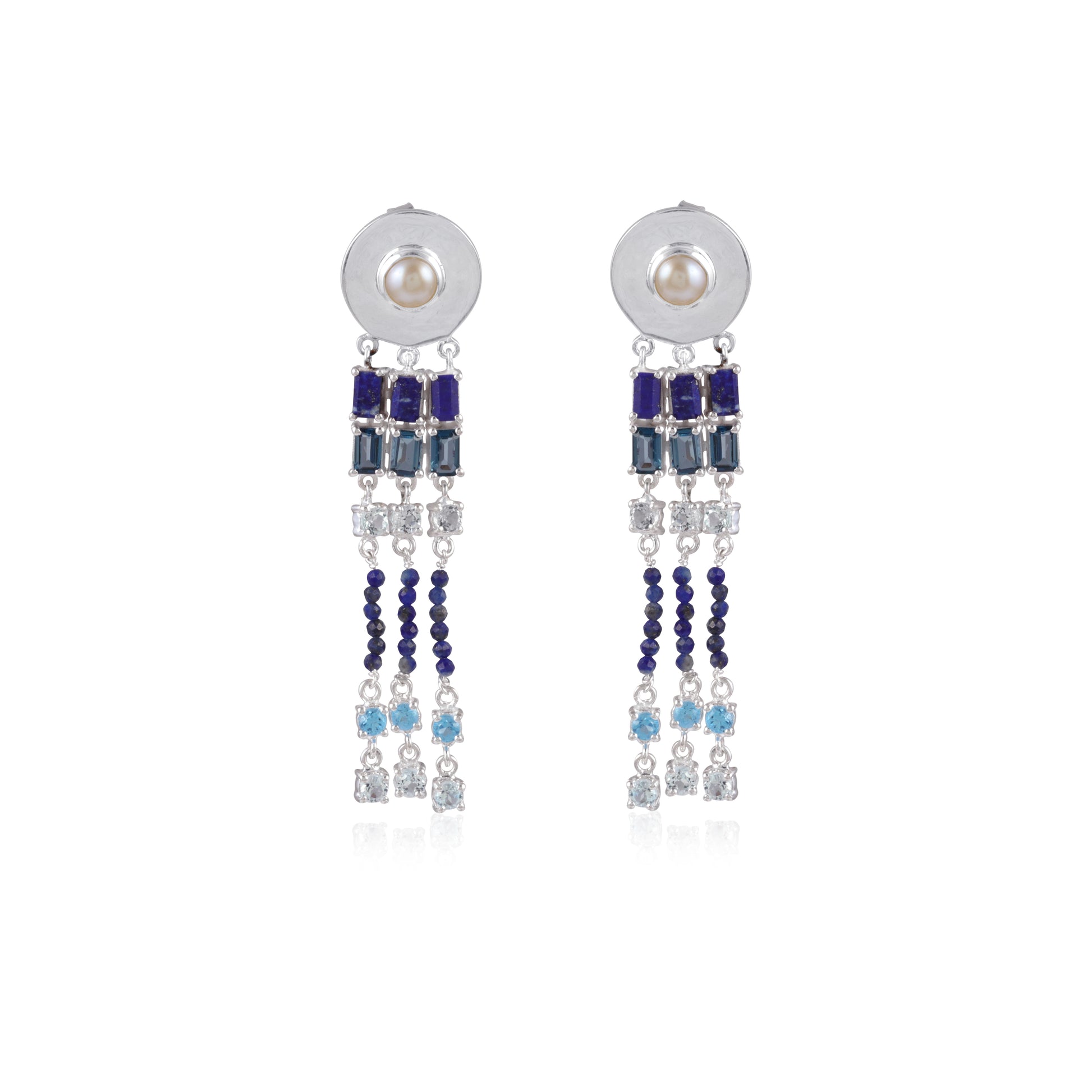 The complete Hokusai set, comprising the Wave necklace, bracelet and earrings, all made with Lapis lazuli, London blue topaz, Swiss blue topaz, aquamarine and pearl.